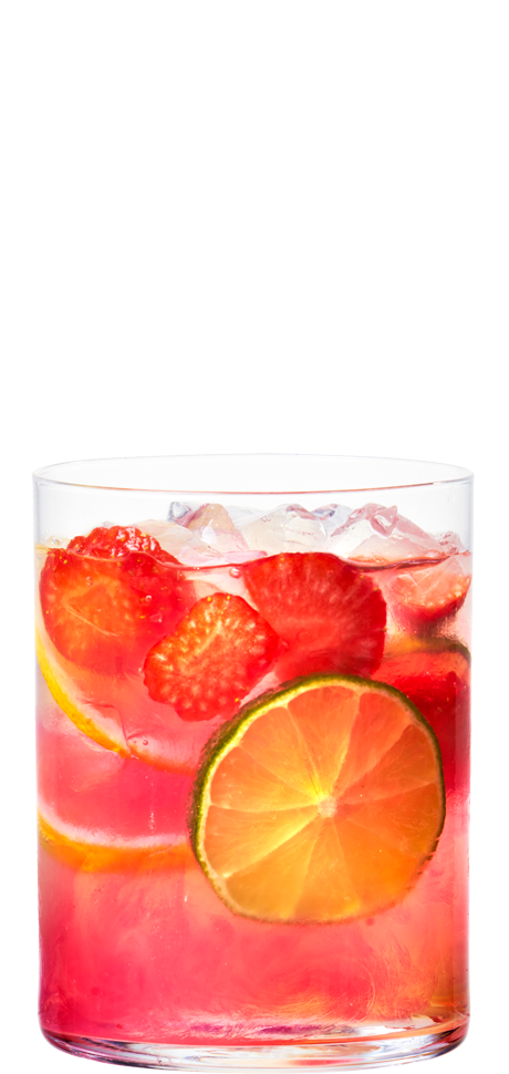 4 cl. SMÅ SURE Sour Twisted Fruit hældes over isterninger. Fyld herefter op med lemon sodavand og tilføj nogle skiver frisk lime. Pynt evt. med friske jordbær.